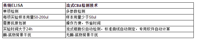 CBA技術(shù)特點(diǎn):CBA是集ELISA和細(xì)胞流式技術(shù)優(yōu)點(diǎn)為一身的液相蛋白檢測(cè)技術(shù)。CBA的每一種微球提供一種蛋白的捕獲表面,捕獲微球與待測(cè)樣品后,呈懸浮態(tài),與ELISA相比,能更有效地捕獲被分析物;CBA具有FCM的寬范圍熒光檢測(cè)特點(diǎn),對(duì)樣本需求量更少,檢測(cè)更快速、更準(zhǔn)確。下面我們介紹一下CBA主要的技術(shù)特點(diǎn):