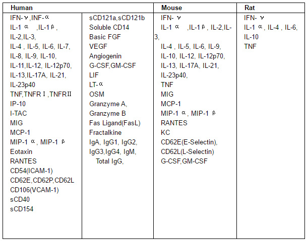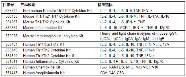 2、CBA Flex Set 細(xì)胞因子檢測(cè)指標(biāo)